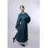 Платье женское повседневное синего цвета из льна с завязками на талии