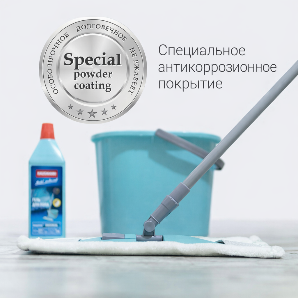 Насадка из микрофибры помогает собирать загрязнения и подходит для регулярной влажной уборки. Телескопическая ручка делает использование швабры более удобным, а поворотная платформа помогает легче проходить участки вдоль стен, вокруг мебели и в других местах, где важна маневренность. За счет такой конструкции швабра подходит для ежедневного применения и помогает сделать уборку более комфортной.